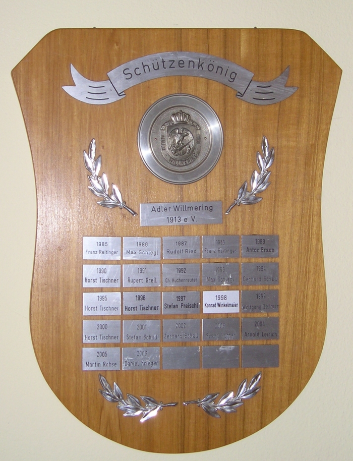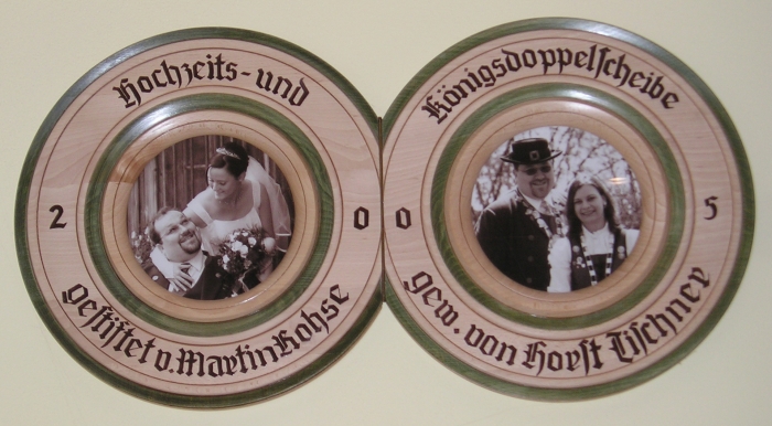 Auf dieser Scheibe bekommt jeder Schützenkönig seine gravierte Plakette.